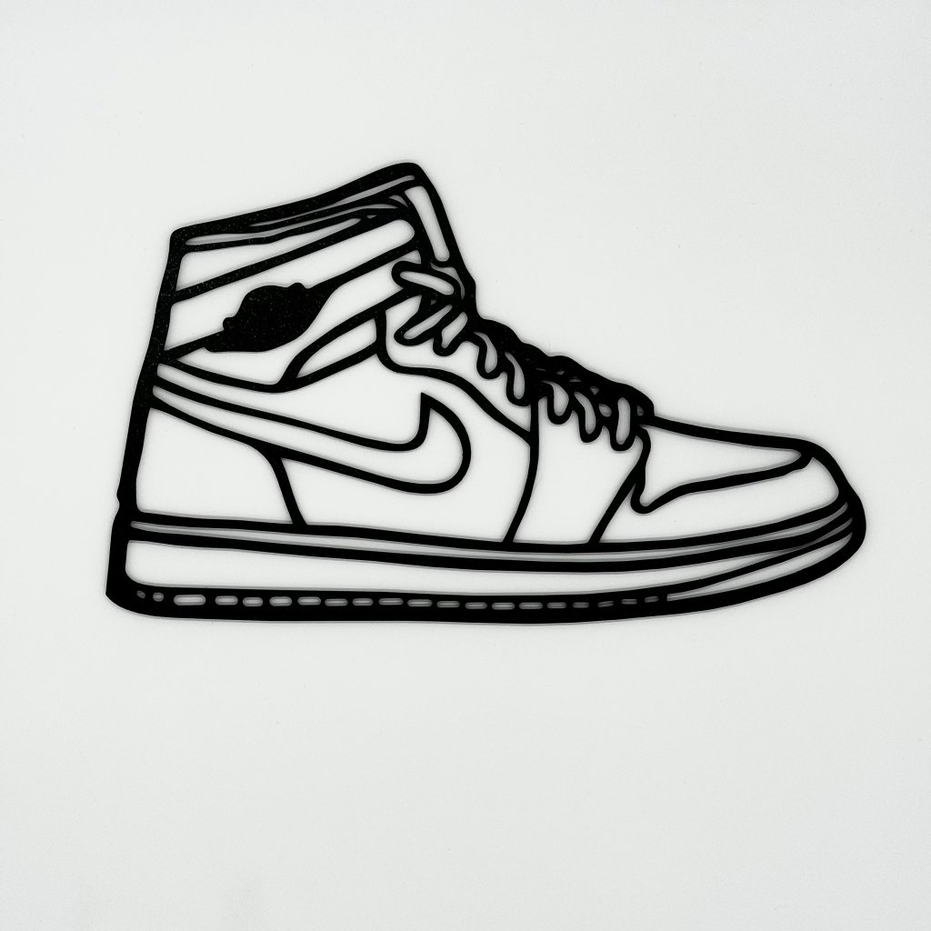 A minimalist sneaker wall piece inspired by the AJ1 profile. Lightweight and photo-friendly, it reads instantly for sneakerheads while remaining tasteful for living rooms, studios and offices.