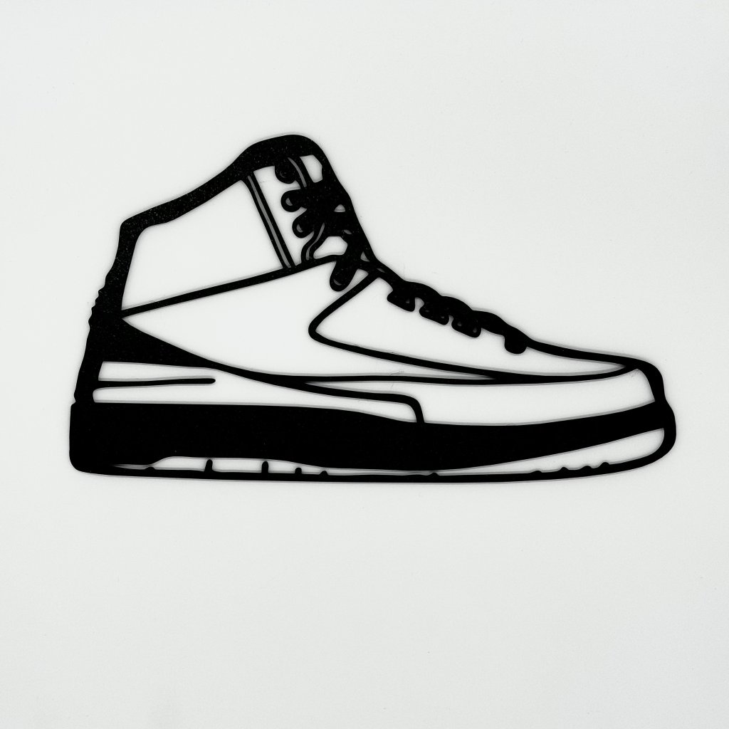 A minimalist sneaker wall piece inspired by the AJ2 profile. The refined lines and paneled contour read instantly for sneakerheads, yet stay tasteful for living rooms, studios and offices.